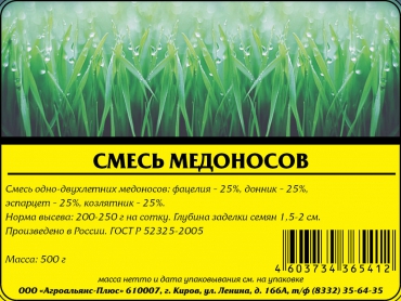 Медоносы - прекрасные растения для экологически чистого сада. Они активно привлекают пчел, бабочек, других полезных насекомых. Медопродуктивность данной смеси достигает 350 кг/га. После цветения зеленую массу растений рекомендуется заделать в почву, как сидеральное удобрение.